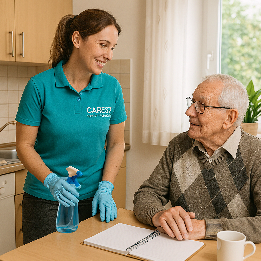 • Hauswirtschaftliche Hilfe (z. B. Reinigung, Einkaufen, Mahlzeitenzubereitung)